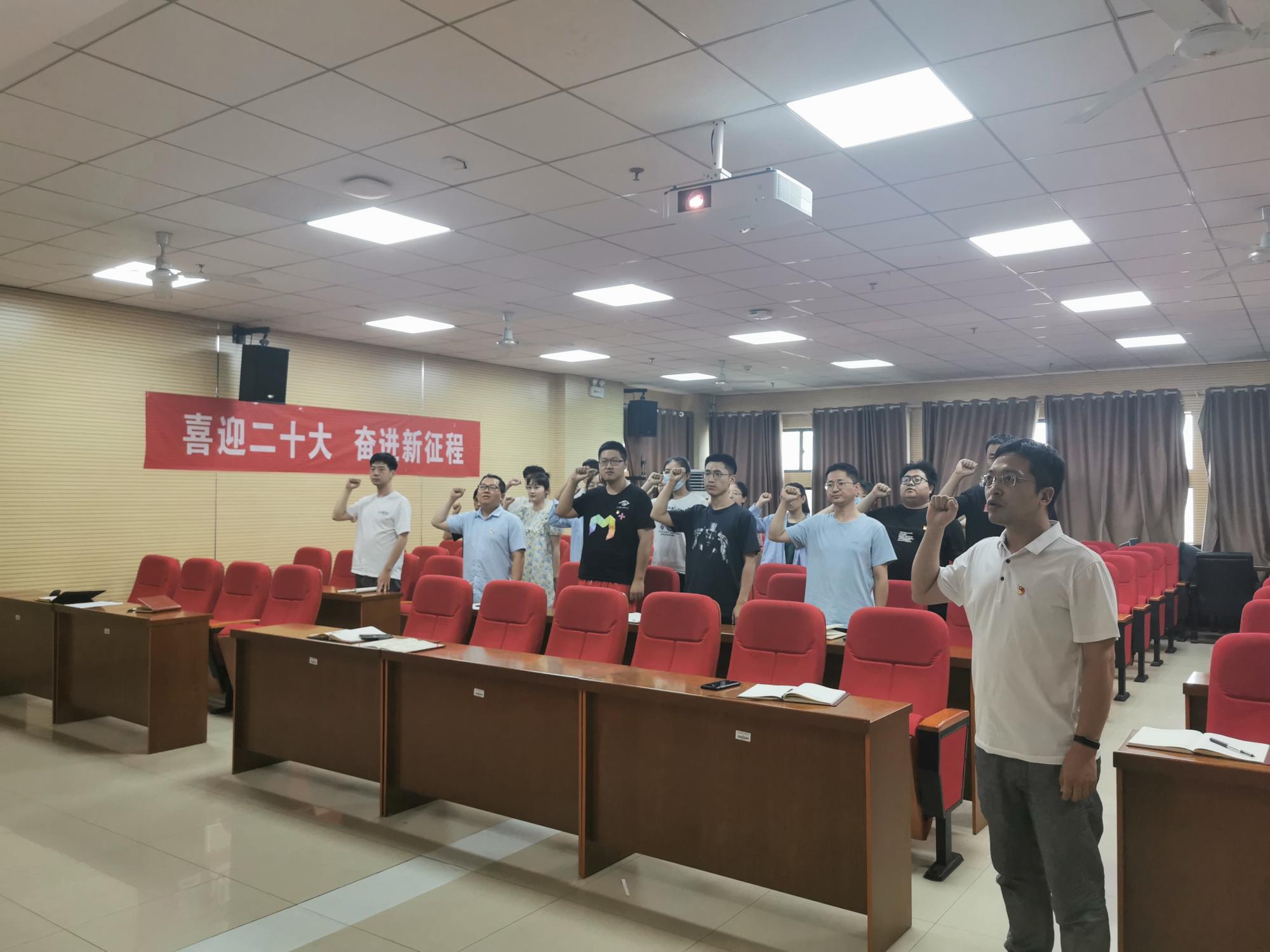“我志愿加入中国共产党,拥护党的纲领,遵守党的章程,履行党员义务......随时准备为党和人民牺牲一切,永不叛党。”面向鲜红的党旗,副处级组织员王敬涛作为领誓人,带领党员重温入党誓词。铿锵有力的誓言声表达了对党的忠诚之心和为共产主义事业奋斗终身的坚定信念。